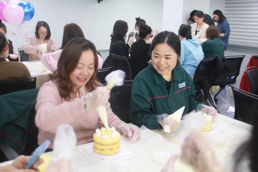 在体验diy烘焙的同时,公司还将烘焙好的蛋糕分发给在岗位忙碌的女职工们,让她们一同感受这份关爱与祝福。