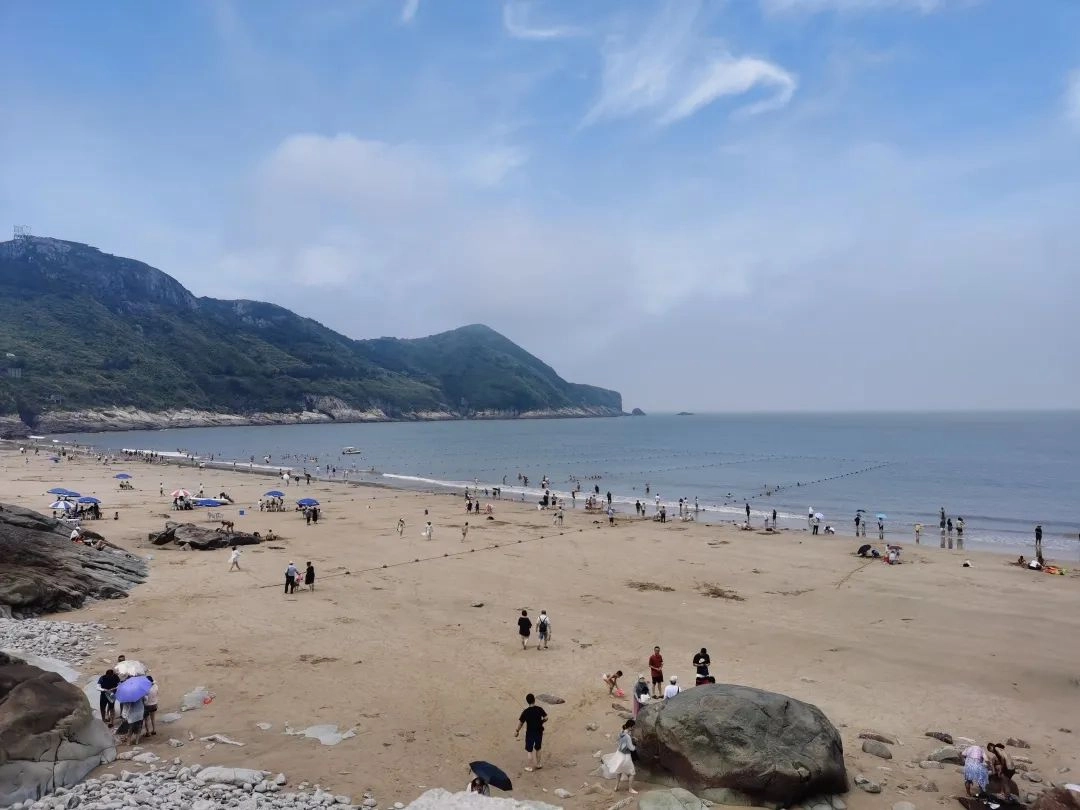 离开小箬村,我们来到了第二站:洞下沙滩,走进景区,远远的望去,阳光,沙滩,海浪......清凉的海水卷着白色的海浪,一浪浪的涌向沙滩,女同事们脱下鞋子,踩踩沙,踏踏浪,忍不住按下快门拍下美好的海景;男同事们则已经迫不及待地泡进海水里欢快地畅游嬉闹。