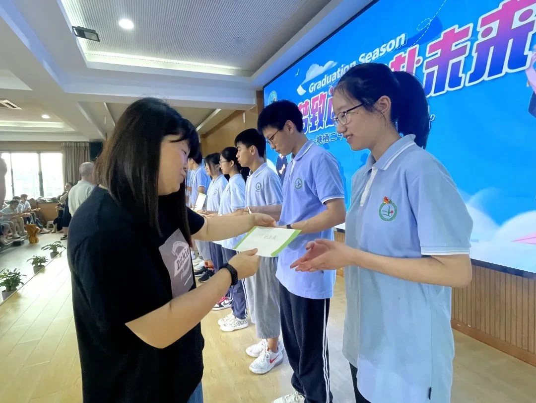 典礼现场,孙伟荣理事长为即将跨入高中的30名优秀学子颁发了助学奖励,鼓励二中学子继续拼搏。