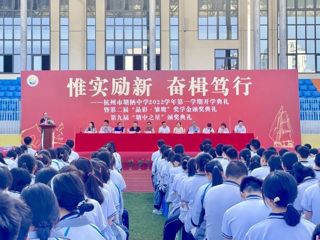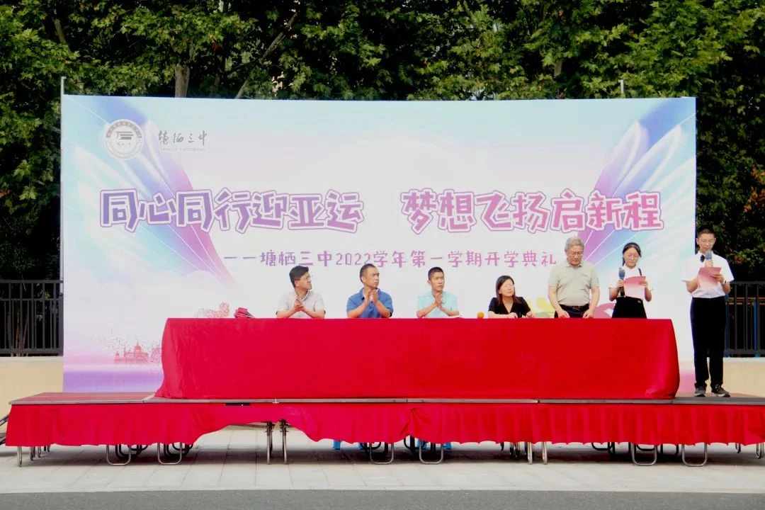 9月1日下午,塘栖三中大操场举行新学期开学典礼,意昂体育社区慈善基金会理事长孙伟荣、理事许素萍出席此次大会,寄语同学们努力学习,为塘栖发展积蓄能量。