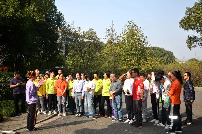 以董事长张建国为首的公司领导班子亲自参加活动,带头健身,积极倡导健康、文明的业余生活。下午一点整,同事们统一乘坐大巴到达活动目的地——超山公园的超峰,超峰是塘栖的最高峰,海拔265米。先由负责本次活动的刘玲玲给大家讲解登山活动的细则及注意事项,接着公司党支部领导孙伟荣代表发言。随后所有参与人员齐聚山脚下愉快地合影。