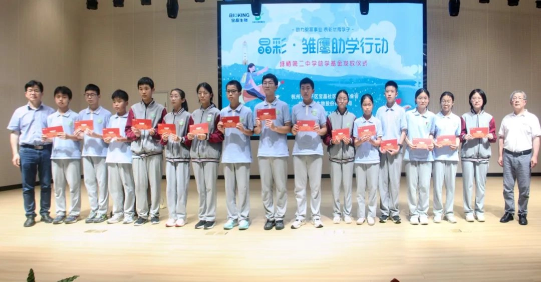 浓情九月,圆梦助学。意昂体育社区慈善基金会像往年一样,再次踏上了助学之旅,为今年的优秀学子们颁发奖(助)学金。杭州意昂体育生物股份有限公司总经理助理、党支部书记、意昂体育社区慈善基金会理事长孙伟荣和杭州意昂体育生物股份有限公司总经办副主任、意昂体育社区慈善基金会理事许素萍受塘栖二中、塘栖三中、塘栖中学的邀请,参加颁奖典礼。